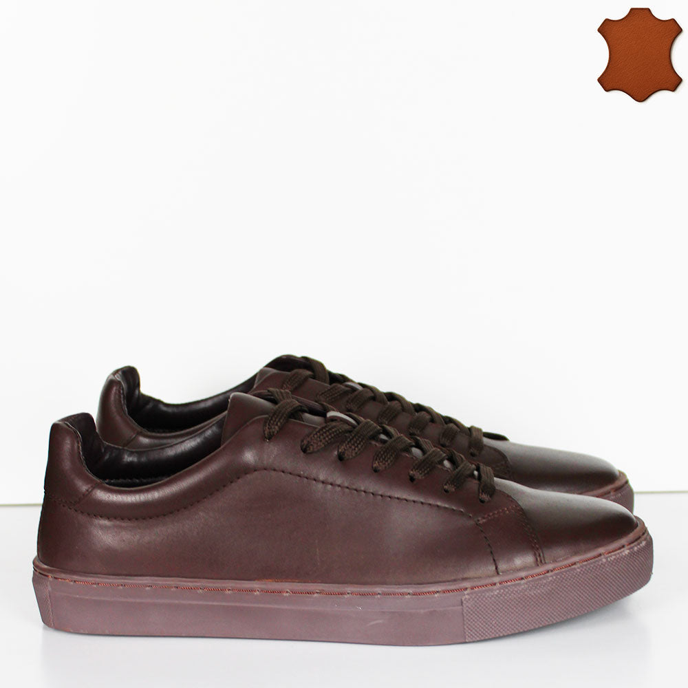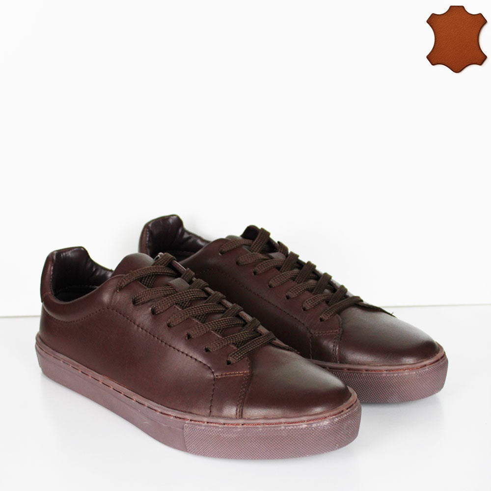 Sneakers da uomo marroni caratterizzate da una tomaia in pelle morbida che garantisce comfort e resistenza. Il sottopiede in pelle offre un’ottima traspirabilità e sostegno, mentre la suola platform leggera assicura maggiore ammortizzazione senza appesantire. Il design stringato permette una calzata personalizzata e sicura, ideale per chi cerca un equilibrio tra stile raffinato e funzionalità.