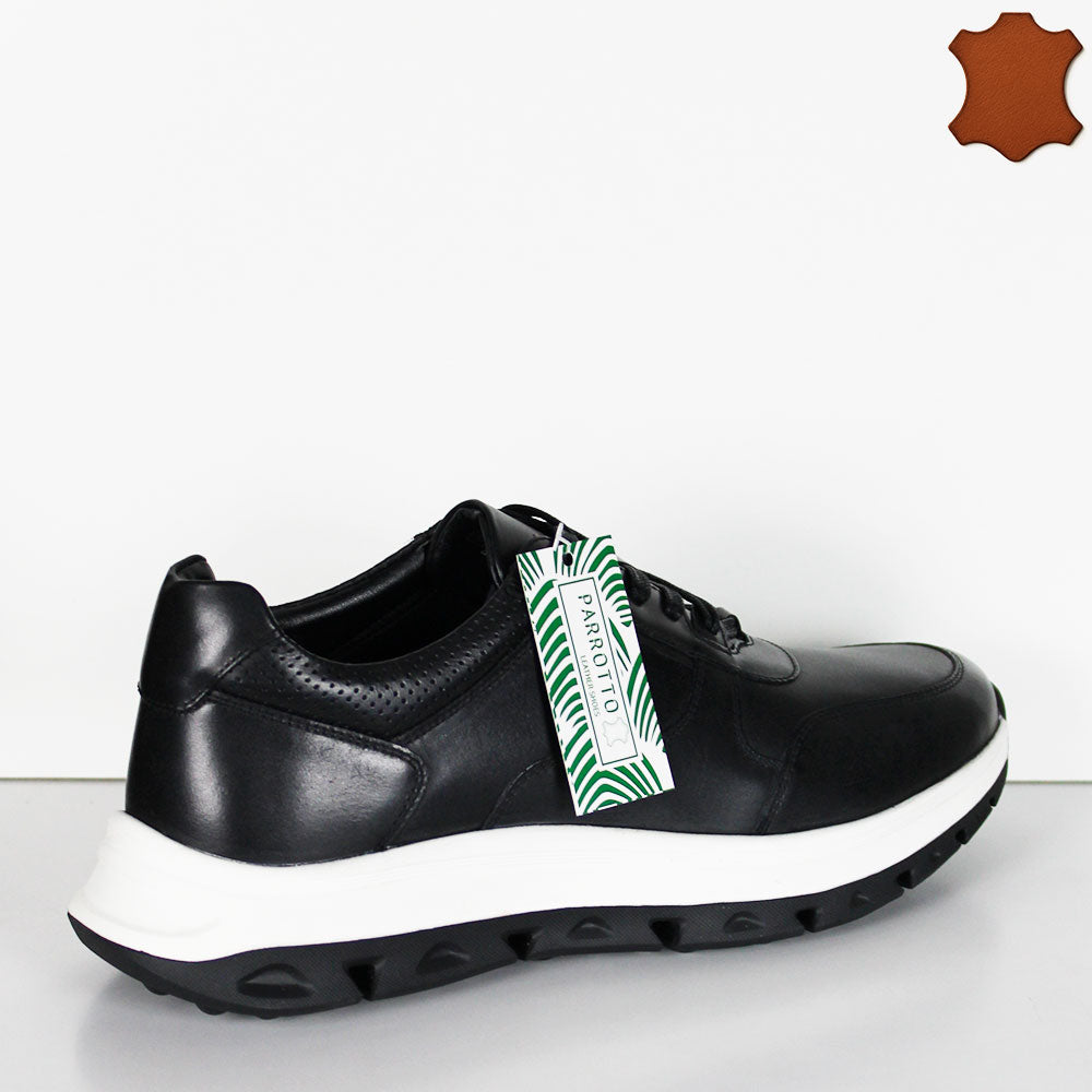 Queste sneakers da uomo nere uniscono eleganza e funzionalità con una tomaia in pelle di alta qualità, garantendo durata e comfort. Il sottopiede in pelle assicura una morbidezza superiore al contatto con il piede, mentre la suola leggera favorisce una camminata naturale e senza affaticamento. Il design stringato offre una calzata sicura e personalizzabile, ideale per chi cerca stile e praticità in un’unica calzatura.
