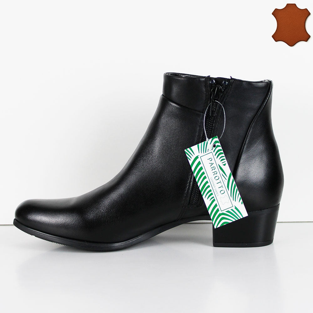 Questi eleganti srivaletti neri in vera pelle combinano stile e comfort grazie al tacco comodo, ideale per un uso prolungato. La zip laterale facilita la calzata, rendendoli pratici e raffinati per ogni occasione. Perfetti per chi cerca qualità e funzionalità in un unico modello.